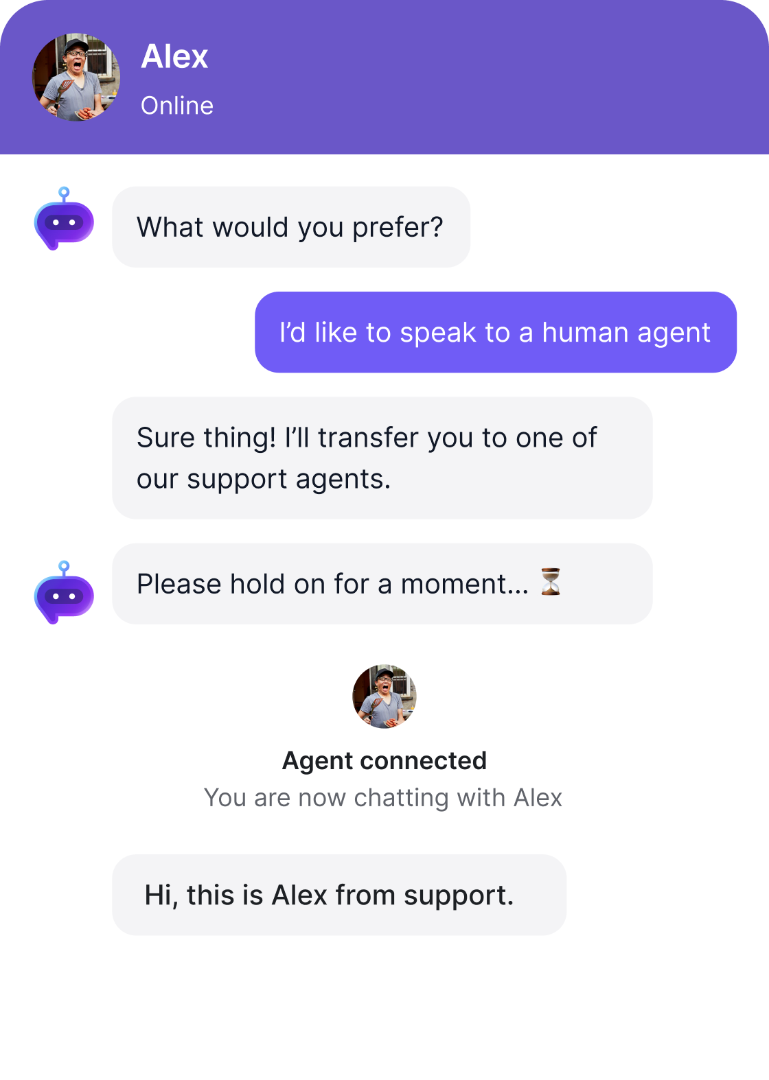 Smooth handoff to human agents when needed